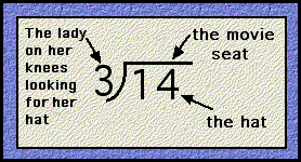 Dear Wants: The story of "The Lady and the Big Hat" is sort of a stupid story, but a famous stupid story. It has helped many students remember how to change improper fractions into mixed numbers. So, here t'is. Hope you enjoy it.