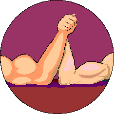 When you are adding numbers with different signs, pretend that the numbers are arm wrestling. The two numbers step into the ring, let's say, +8 and -3. The numbers take off their robes--that is, their positive and negative signs. (Your teacher may call taking off the signs "absolute value.") The numbers both put their elbows on the table and go hand to hand, muscle to muscle. The big number always wins. In this case, 8 wins, because without its sign, 8 is bigger than 3. 8 wins the match by 5 points. (8 - 3 = 5). After 8 wins, its positive sign goes with 5. So, +8 + -3 = + 5.