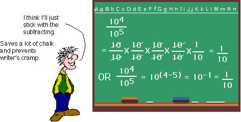 Dear Cindy:I must admit that the methods for multiplying and dividing exponents are some of the strange, but true, rules of mathematics. Why would anyone add when they really meant to multiply or subtract when they wanted to divide? But we do. These rules apply to any kind of exponents, not just powers of ten, so first let's look at exponents in general.